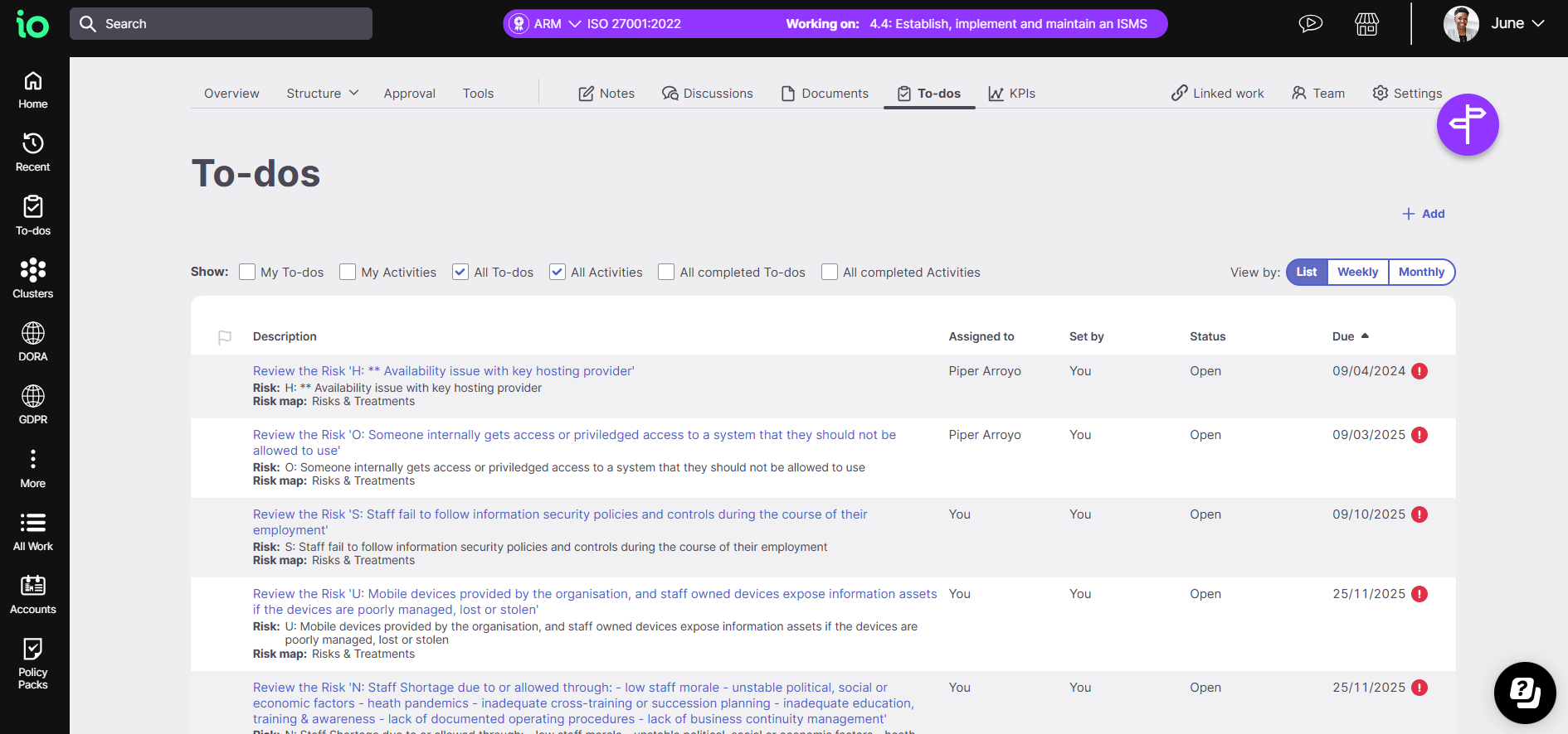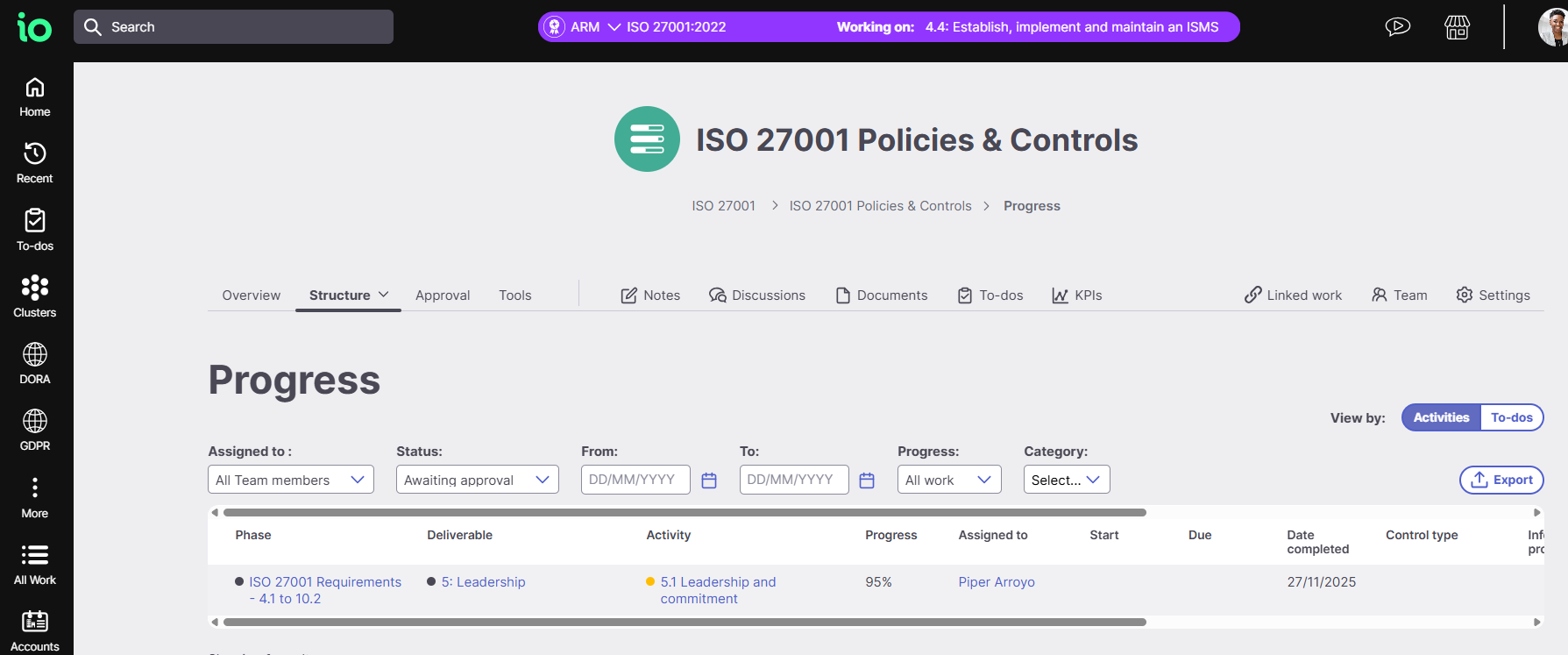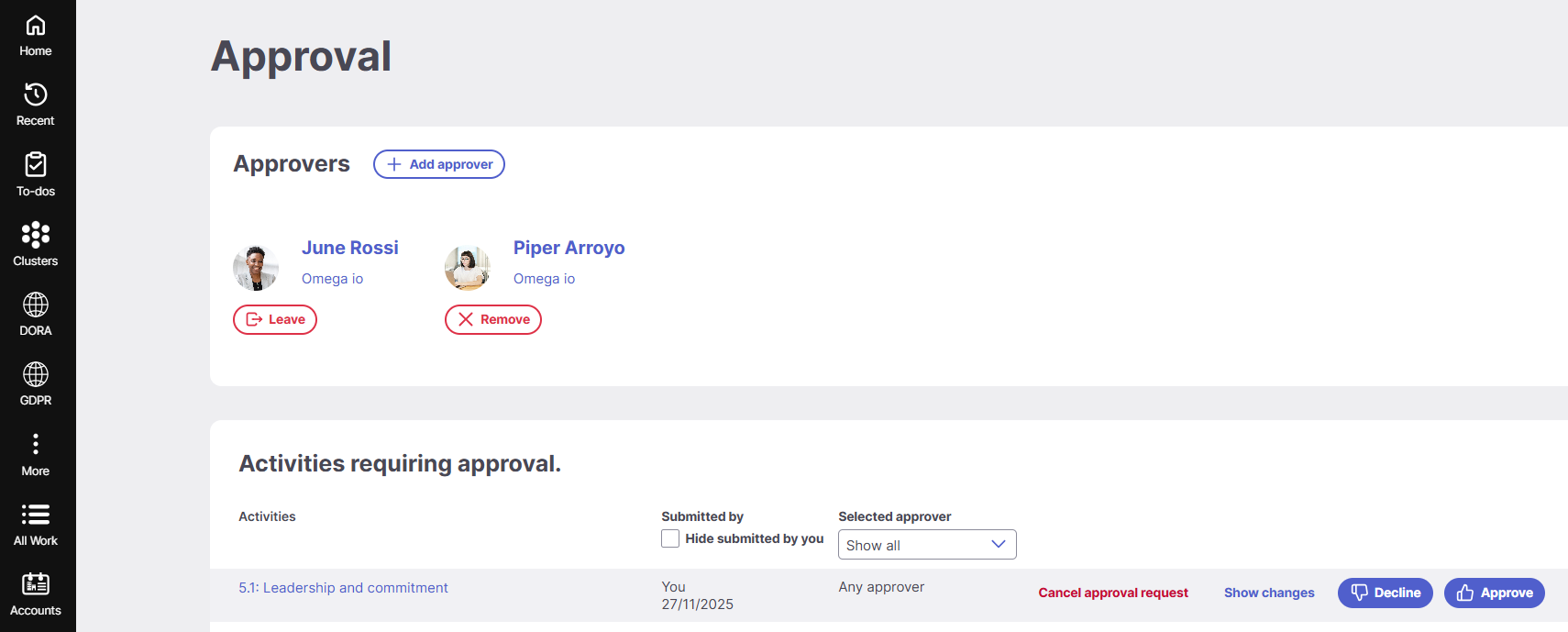 The following steps apply to projects where approval is enabled, such as the ISO 27001 Policies and Controls project.