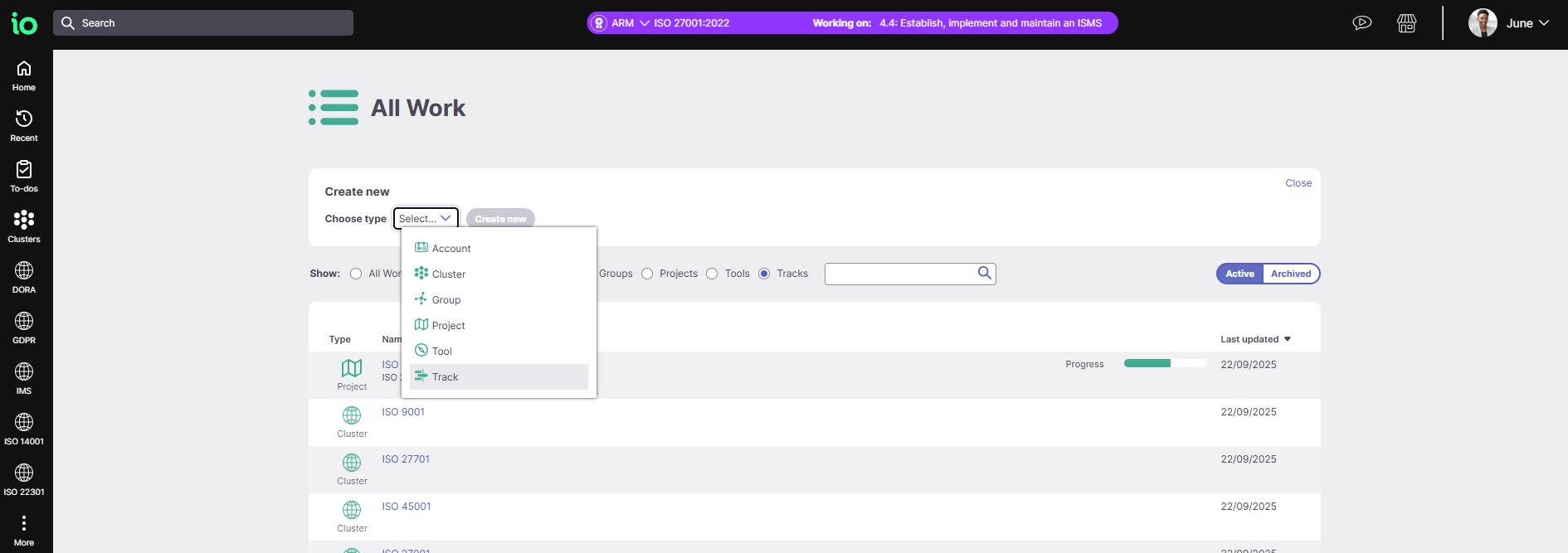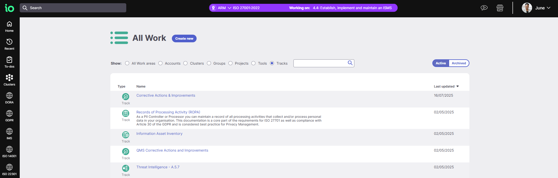 ISMS.online includes ready-made Tracks for common workflows, such as: