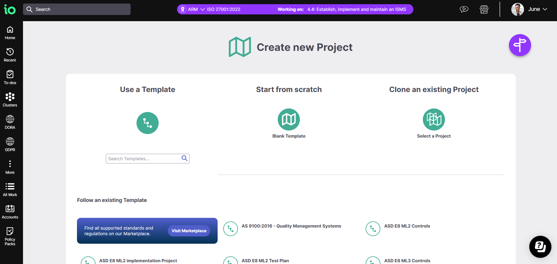 Templates in ISMS.online let you create a pre-defined project structure designed to help you achieve a specific outcome.