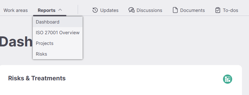 The Dashboard is automatically updated with data from any Risk Registers, Tracks, Policy Packs, or KPIs included in your Cluster or in any Projects within it.
