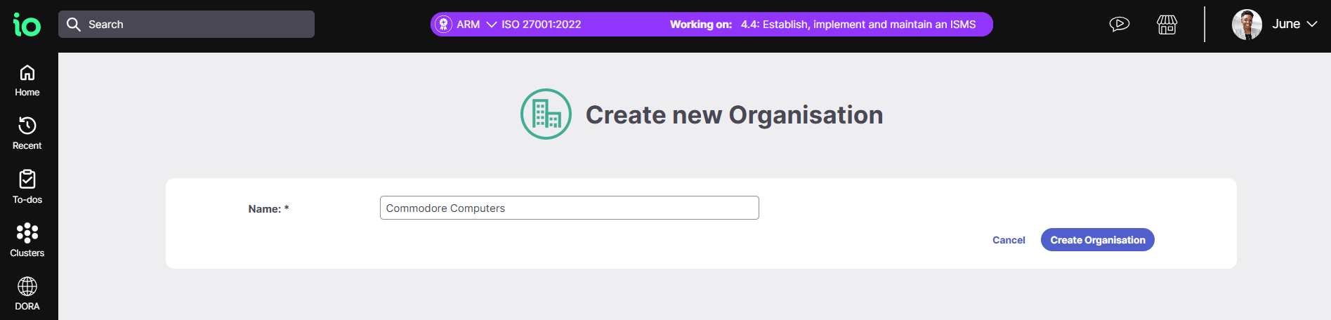 - Select Add Organisation. This will take you to the Create New Organisation page.