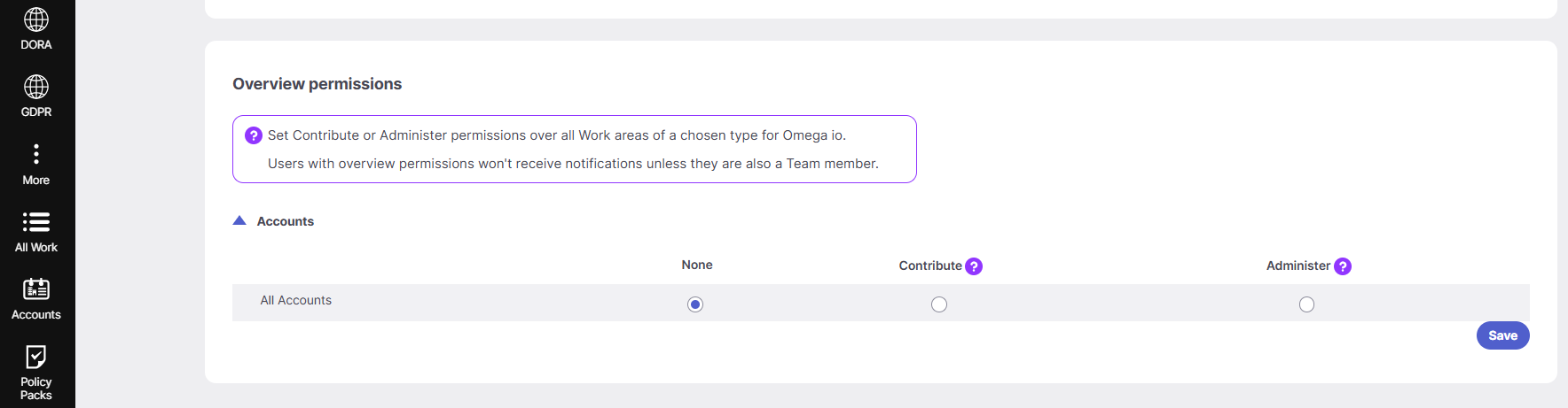 - Administer – Full administration of all Accounts areas, including team management and deletion.