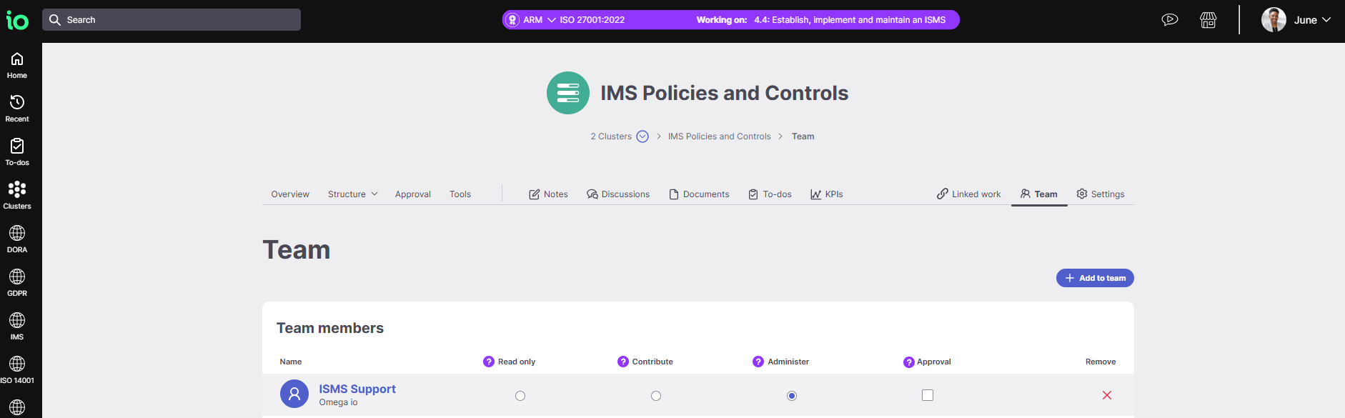 Grant Administer access to any work areas we’ll need to work in. This can be managed via the Teams page. See our guide to managing Teams for help.