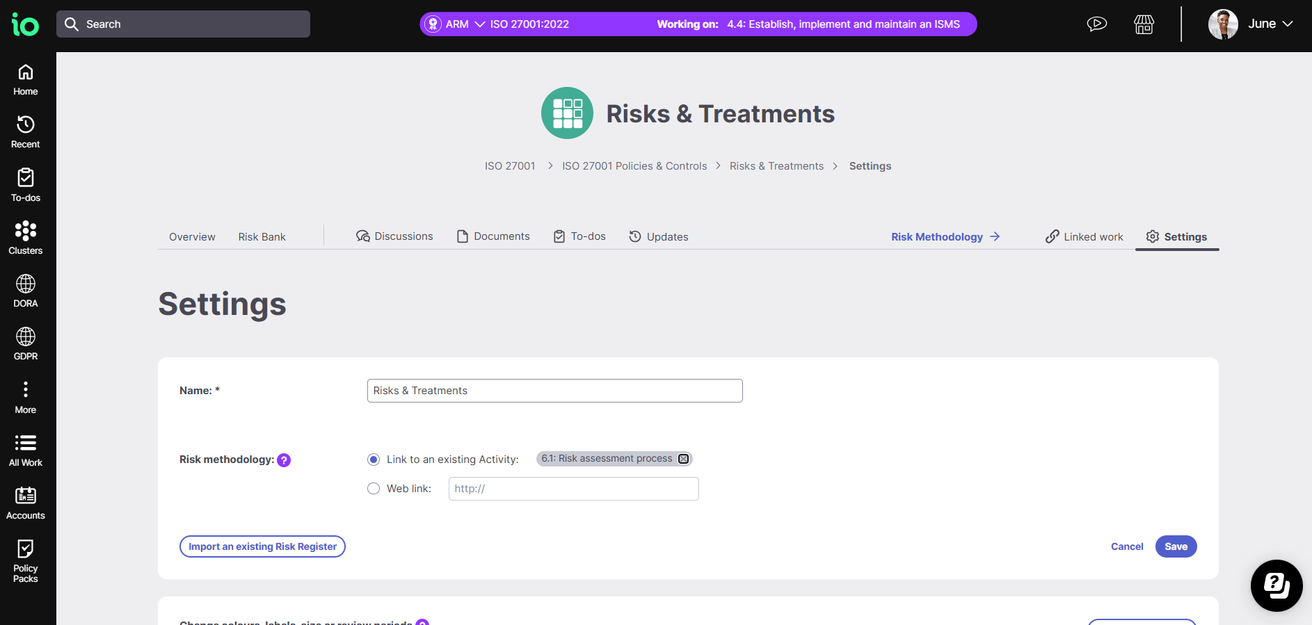 Any Risk map in ISMS.online can be connected to Microsoft Teams using the available workflow, the workflow can be enabled once per Risk map.